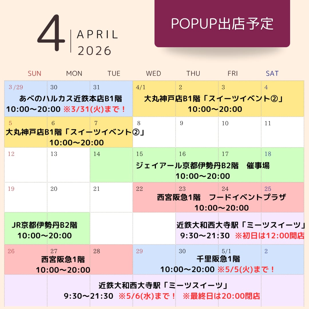 POPUP出店予定(百貨店・駅ナカ)